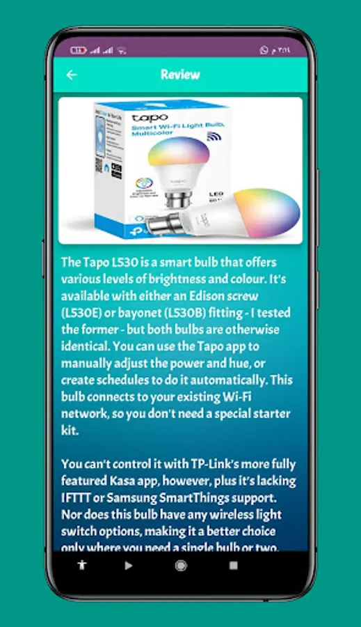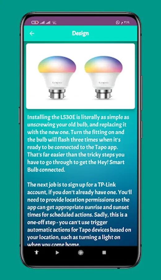An application Tapo Smart Light Bulb Guide that gives you information
