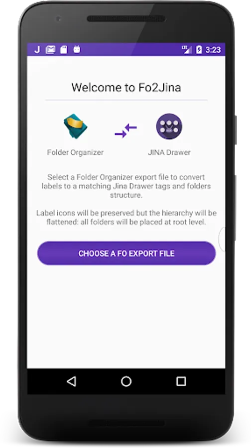 Fo2JINA accepts as input a Folder Organizer export file and converts the FO labels to a Jina App Drawer and Sidebar tags and folders structure.