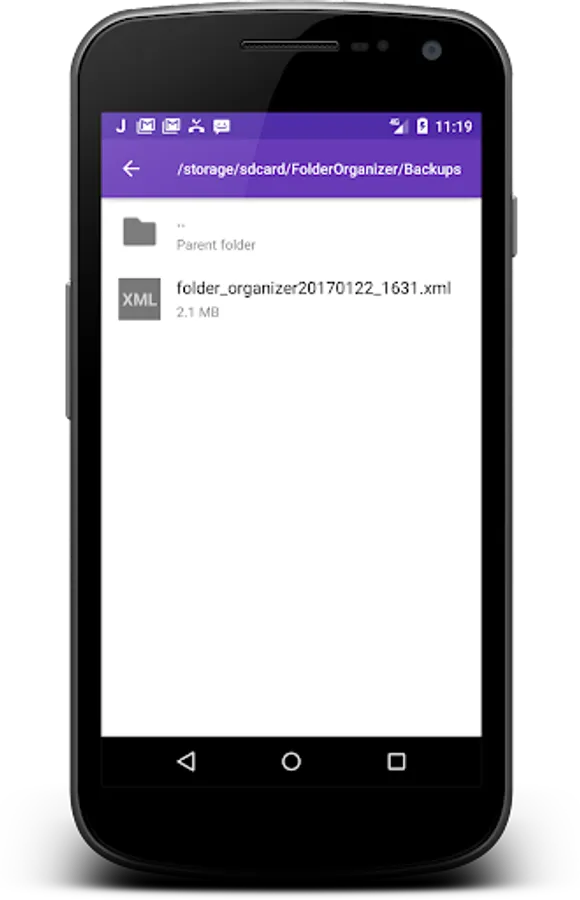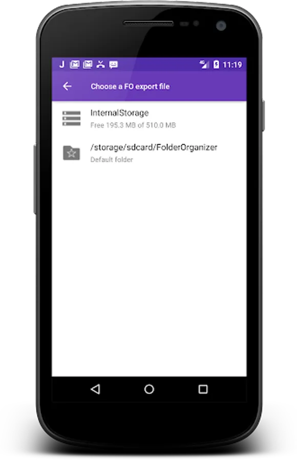 App requirements: a Folder Organizer .xml export file and Jina installed and configured on the device.
