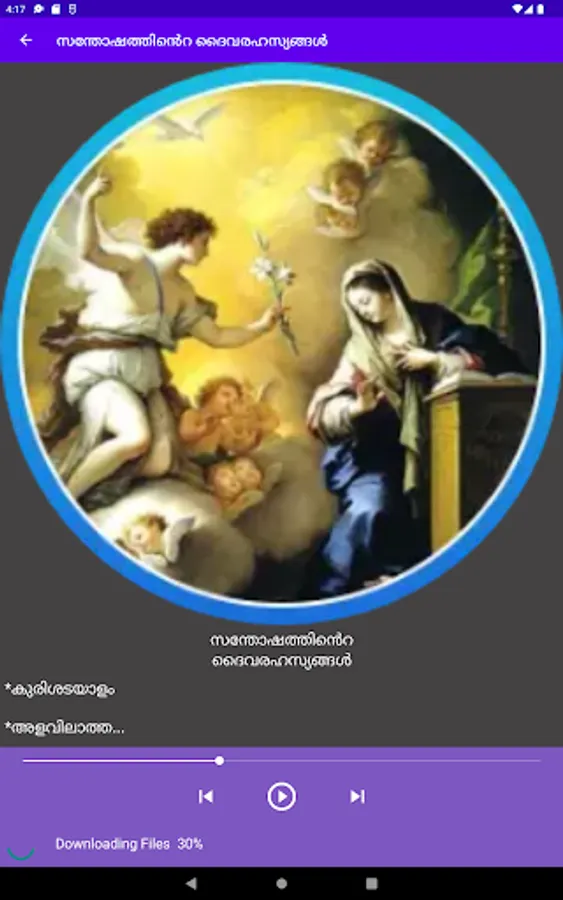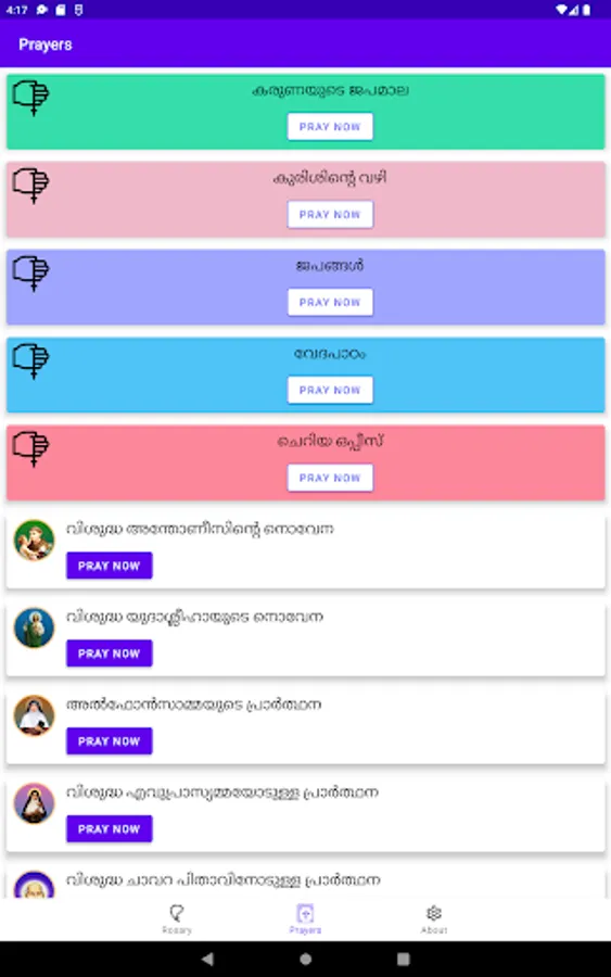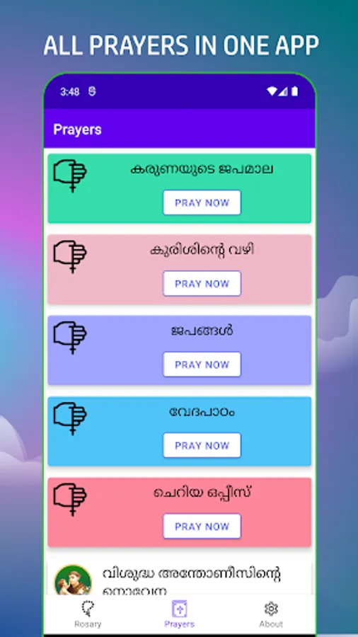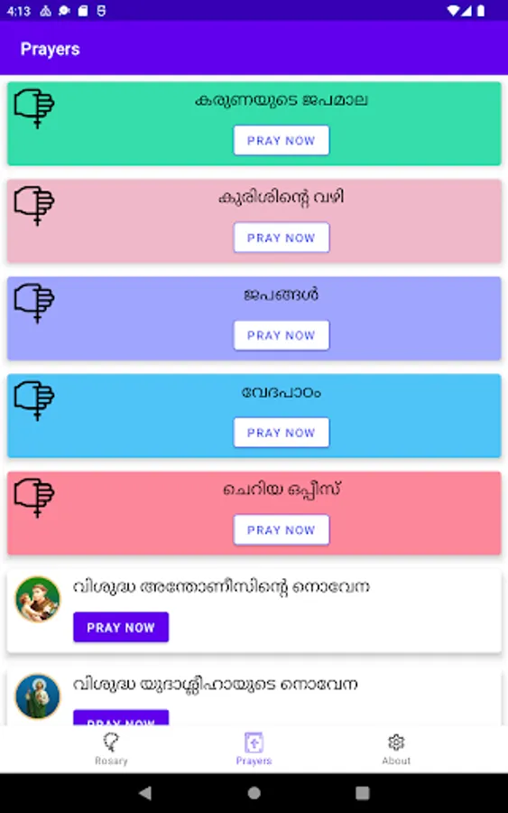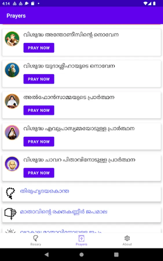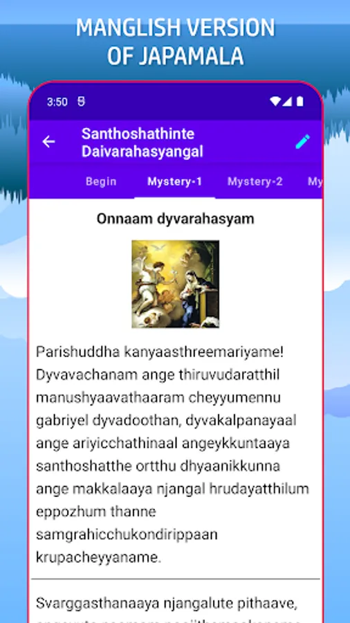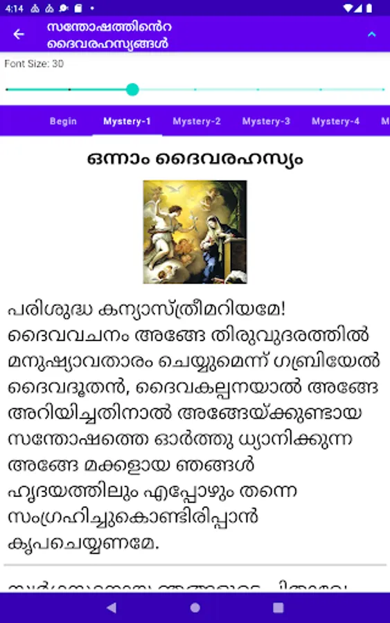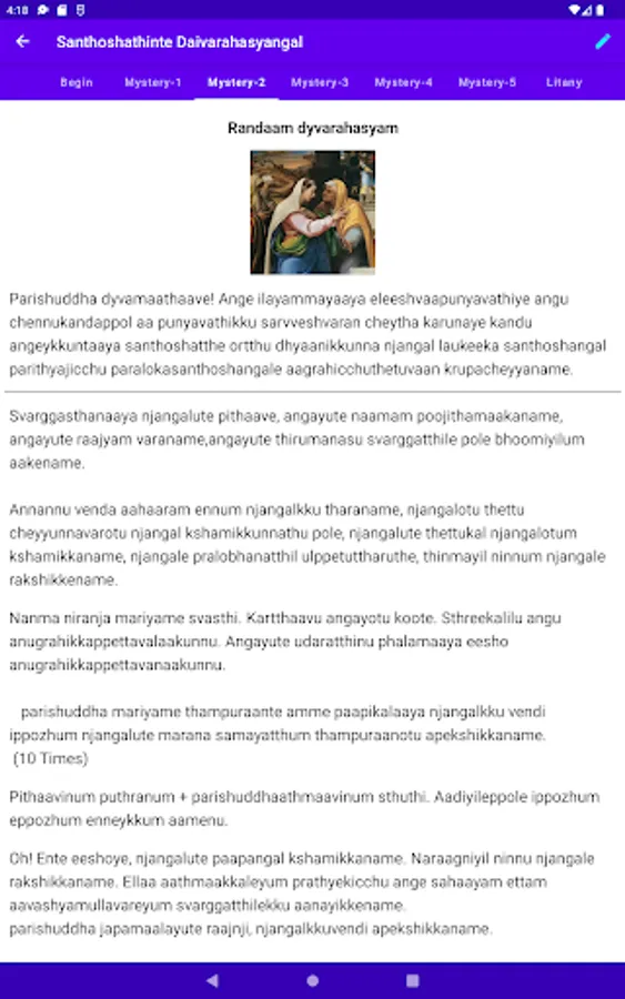 This App contains all the prayers of Rosary in Malayalam language also known as 'Japamala'. This app has the following options: