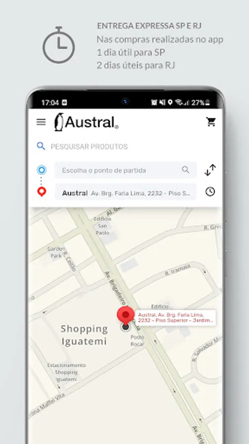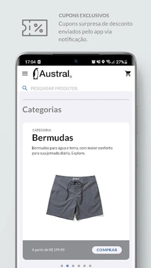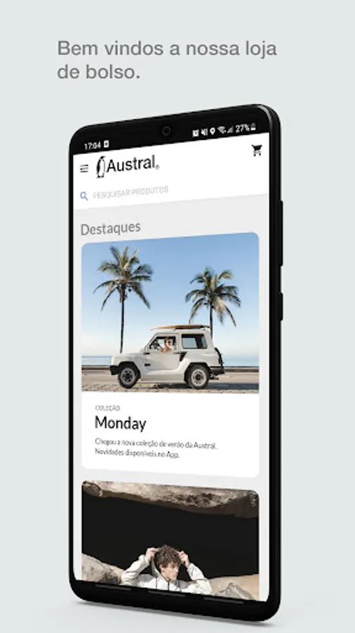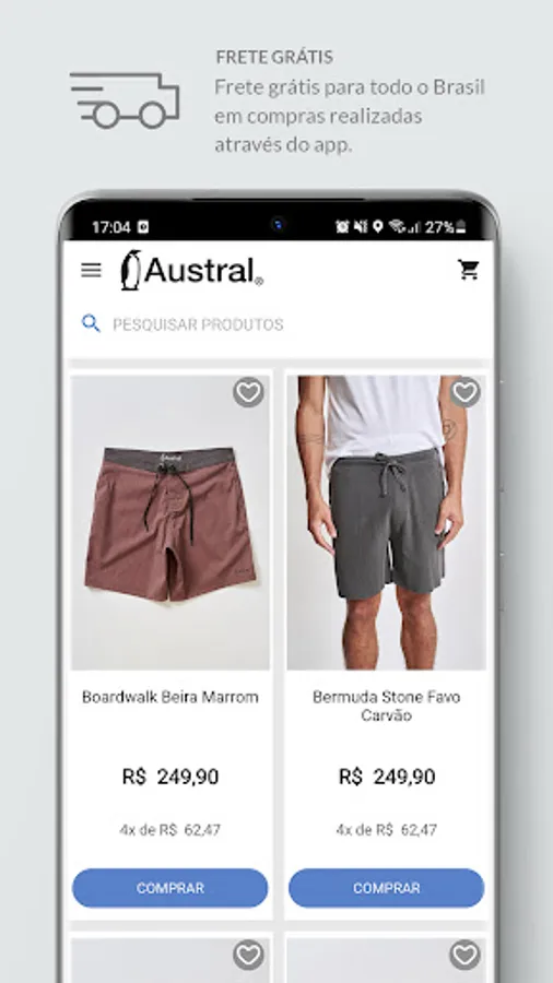 Austral's app is our new pocket store, featuring exclusive conditions such as free shipping on all orders, application-specific coupons and express delivery throughout Brazil.