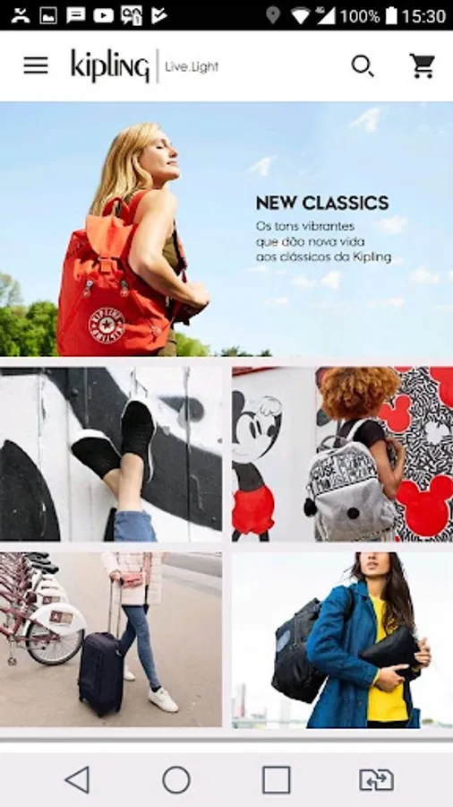 The Kipling Brasil application connects you to the Kipling Live Light world. Discover our handbags, shoes, backpacks and accessories and have access to them all first hand.