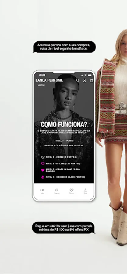It's pure energy, it's power, it's sensuality, it's high self-esteem. It's much more than clothes, it's empowerment, it's beauty, it's exuberance. Our collections, our jeans, our handbags and shoes carry the codes of Lance Perfume in the details, so that all women can live this fashion experience. And it's no wonder that whoever loves Launch Perfume calls themselves LP Lover. A love affair that now has a Loyalty Program for those who are passionate about the brand, in which you have access to exclusive benefits and news in advance.