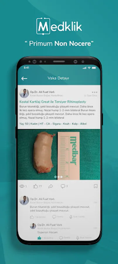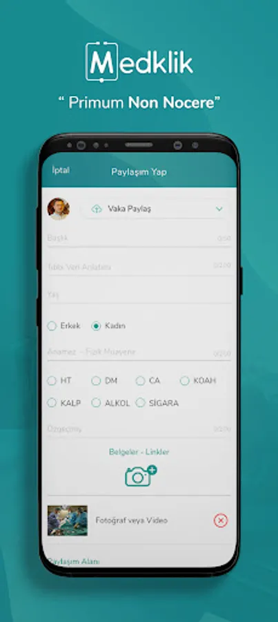 The branch cases to be followed on the main screen can be selected for the filtering option of the application. Physicians will be able to follow other physicians, establish connections with mutual permissions, and securely send messages with the physicians they are in contact with. The physicians' accepted comments will be starred by the physicians who read them, and the number of quality comments made by the relevant physician will be displayed as an asterisk in the profile. The comments to be made by the physicians on the cases will be advisory and will not be legally binding. In the activity section, there will be information such as Congress, Announcements, Job Postings, Medical Agenda and special campaigns for Medklik, and physicians will be able to receive notifications for events that concern them in their branches and their location. Medical data entered in the title, anamnesis, final diagnosis and label sections in the files will provide convenience in case archive searches. Thousands of files that are open to public sharing and allowed to be viewed in searches will make a significant contribution to medical and dental education. In addition, physicians will be able to divide the files they want into groups named according to their qualifications, store them in the personal archive section of Medklik, and use them for article, case report and publication purposes when necessary. All personal data are stored in a secure infrastructure and in accordance with legal requirements.