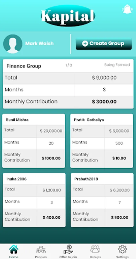 Kapital is a mutual finance application which is designed as a platform for peer to peer savings and lending. The App enables you to create a group/groups with your trusted friends to save and borrow together.