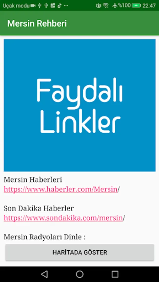 Without having to consume your offline internet quota, all the communication numbers you will need in the city you live in will be stored on your mobile phone. When you want to introduce your city or when you want to travel easily, Mersin Travel Guide and City Application ..