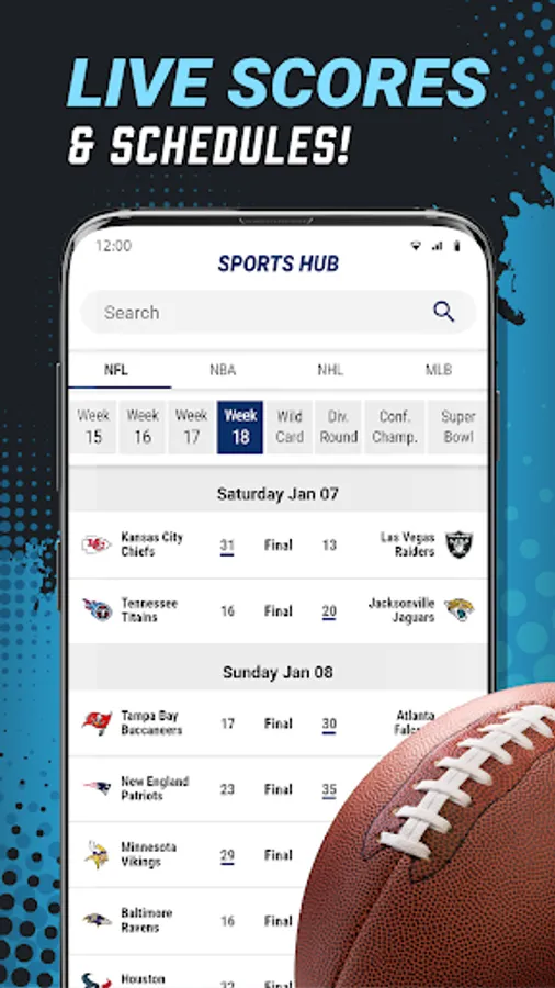 🔢SCORES: Keep up with LIVE scores, stats and schedules inside the NFL, NBA, NHL, MLB, NCAA, and much more.