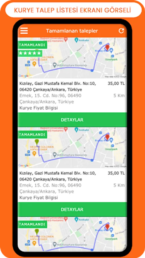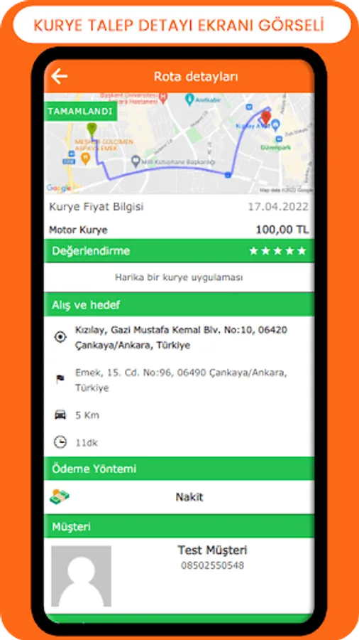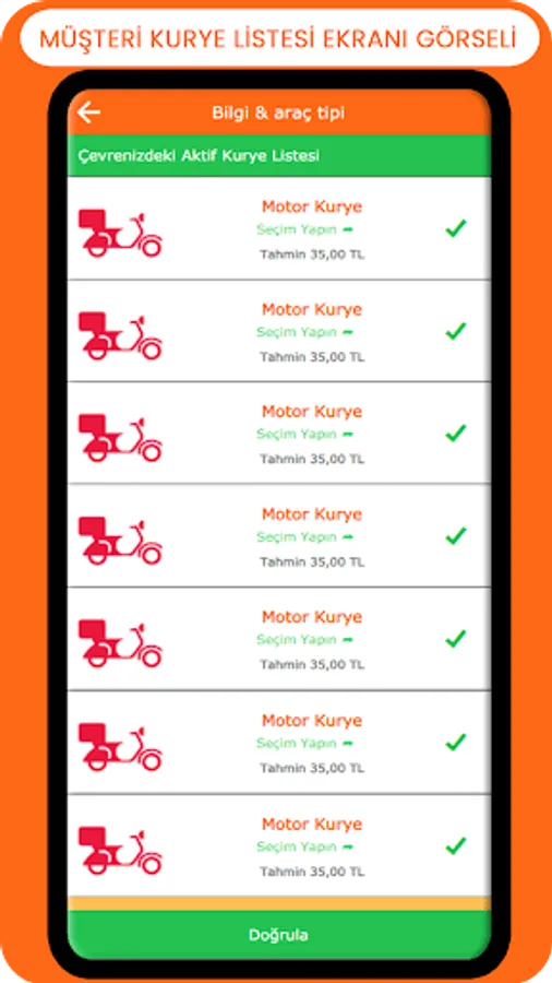 -The customer chooses the courier suitable for him and sends the request to the courier after choosing the payment method.