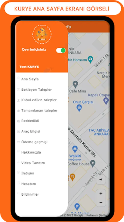 -After logging in, the courier selects his vehicle in the vehicle information section, enters his plate and indicates the area to be served in kilometers.