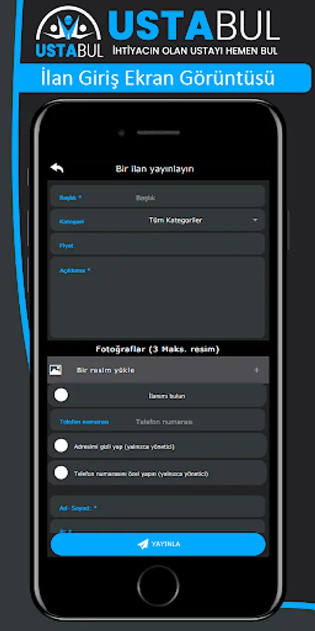You can place unlimited ads on the Find Master application. In the published advertisements, the service user and the posting master, in case of any problem, the entire responsibility is between the advertiser and the service user. Usta Bul cannot be held responsible in such cases. The authority to post an advertisement for a lifetime is blocked by a master who receives 3 complaints by users.