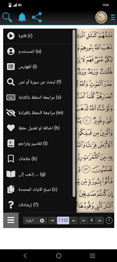 The Holy Qur’an is complete without an Internet connection, and it is completely identical to the paper Qur’an, in addition to the search feature, the supplication of the seal, the ability to place a sign, the index of the chapters, the index of parts and parties, and the ability to move to any page. In the event that the program is closed at a specific page and opened again, it will automatically go to the page at which it was closed, in addition to the ability to read in both horizontal and vertical modes, with a clear font and the background color of the pages that is comfortable for the eye.