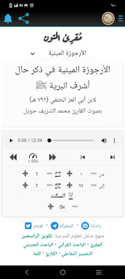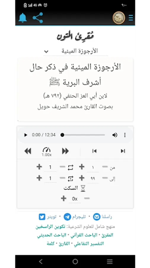 7- A reciter of Al-Matoun, and it contains all the texts in different voices to master its memorization