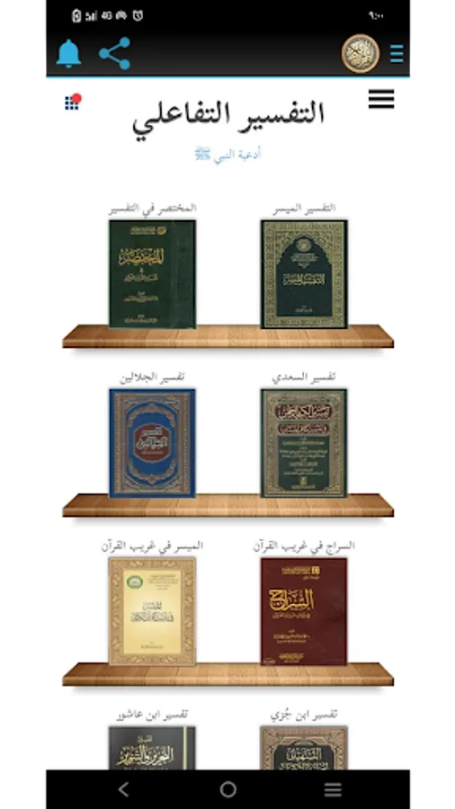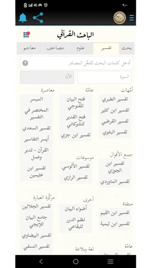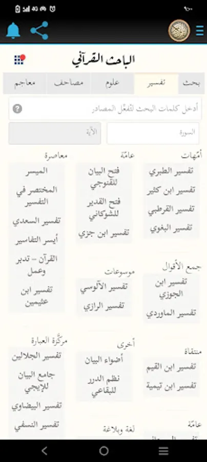 5- The interactive interpretation section, which contains all the interpretations that a Muslim needs