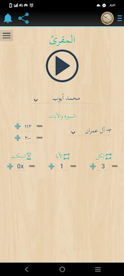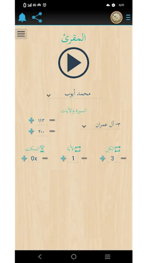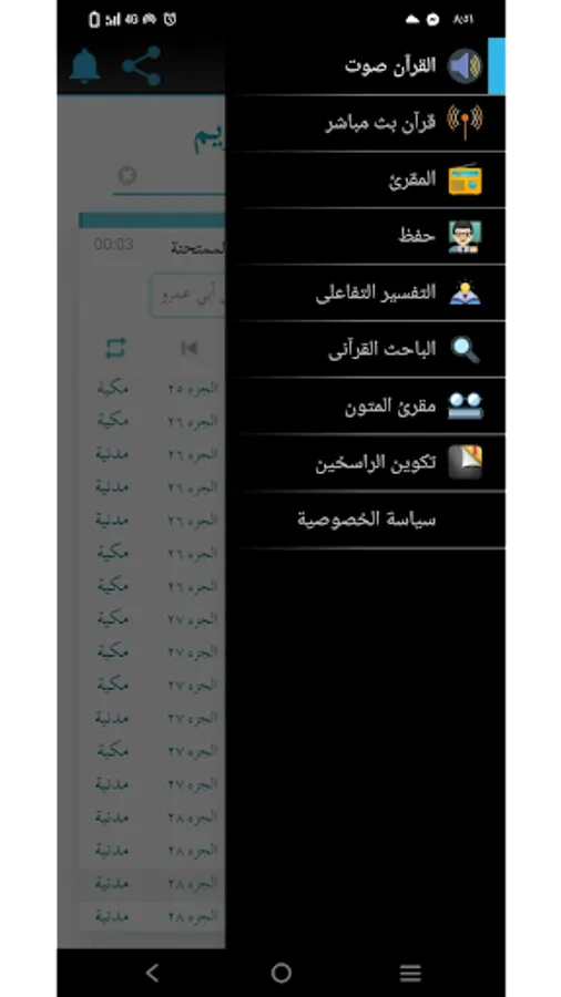 3- The reciter section, which contains all the reciters for memorization and a reference for memorizing the Qur’an