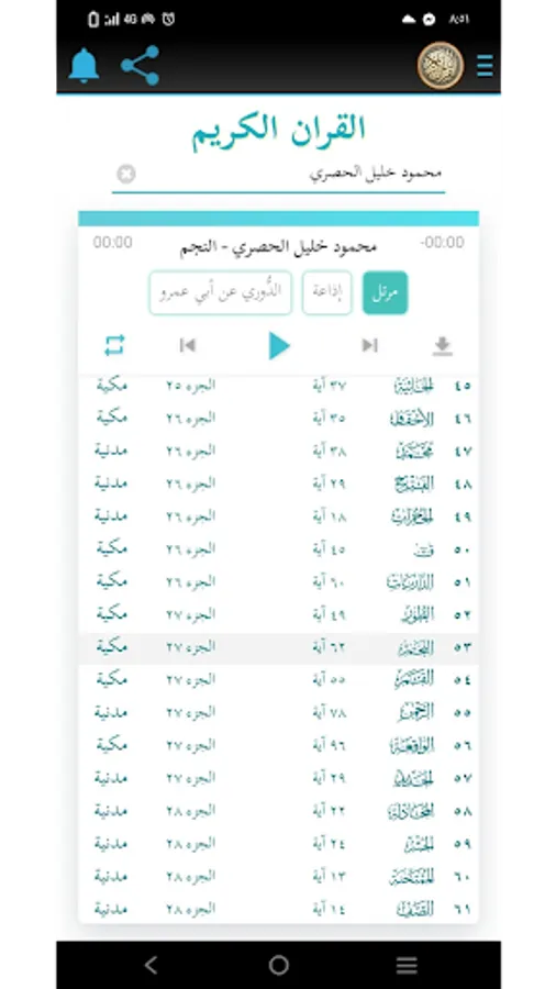 A comprehensive Quranic application for reading and reciting the Noble Qur’an, easy to use, with many features, including: