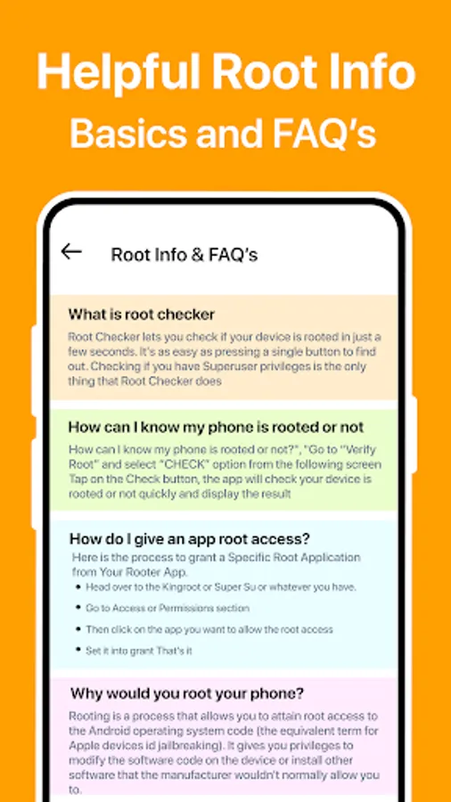 Root Checker App: Verify Root will not Root your Android device. It will ensure if the device is rooted properly or not, or have root verification, also check if BusyBox is installed, super su app is installed or not, root access info, super user binary, SELinux status. Root validator simplifies the process of confirming root access, providing users with peace of mind and enabling them to make informed decisions about their device's capabilities and customization options. Root Check app will tell you instantly if your device is rooted and super su or superuser installed properly.