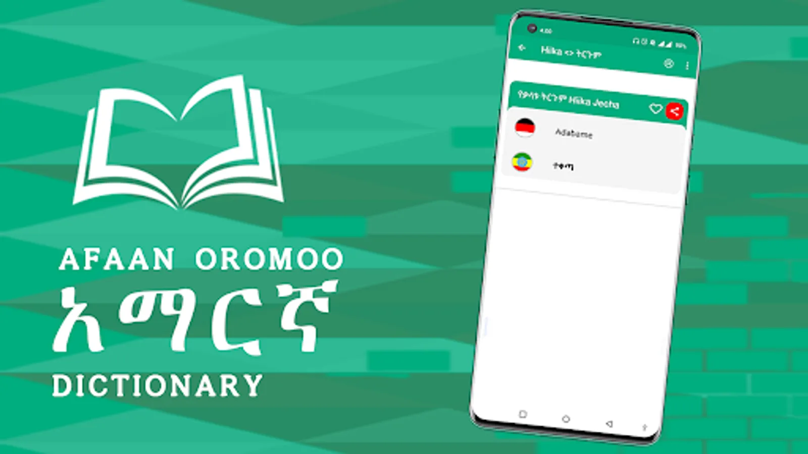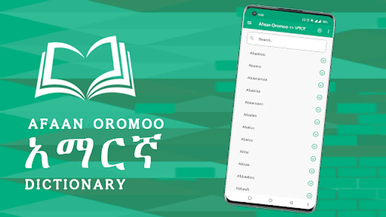 This app contains more than 10000 Basic Afan Oromo words to Amharic Definition Offline. It is basic to know basic Afan Oromo words, The corresponding definition is more simple and easy to understand for all.