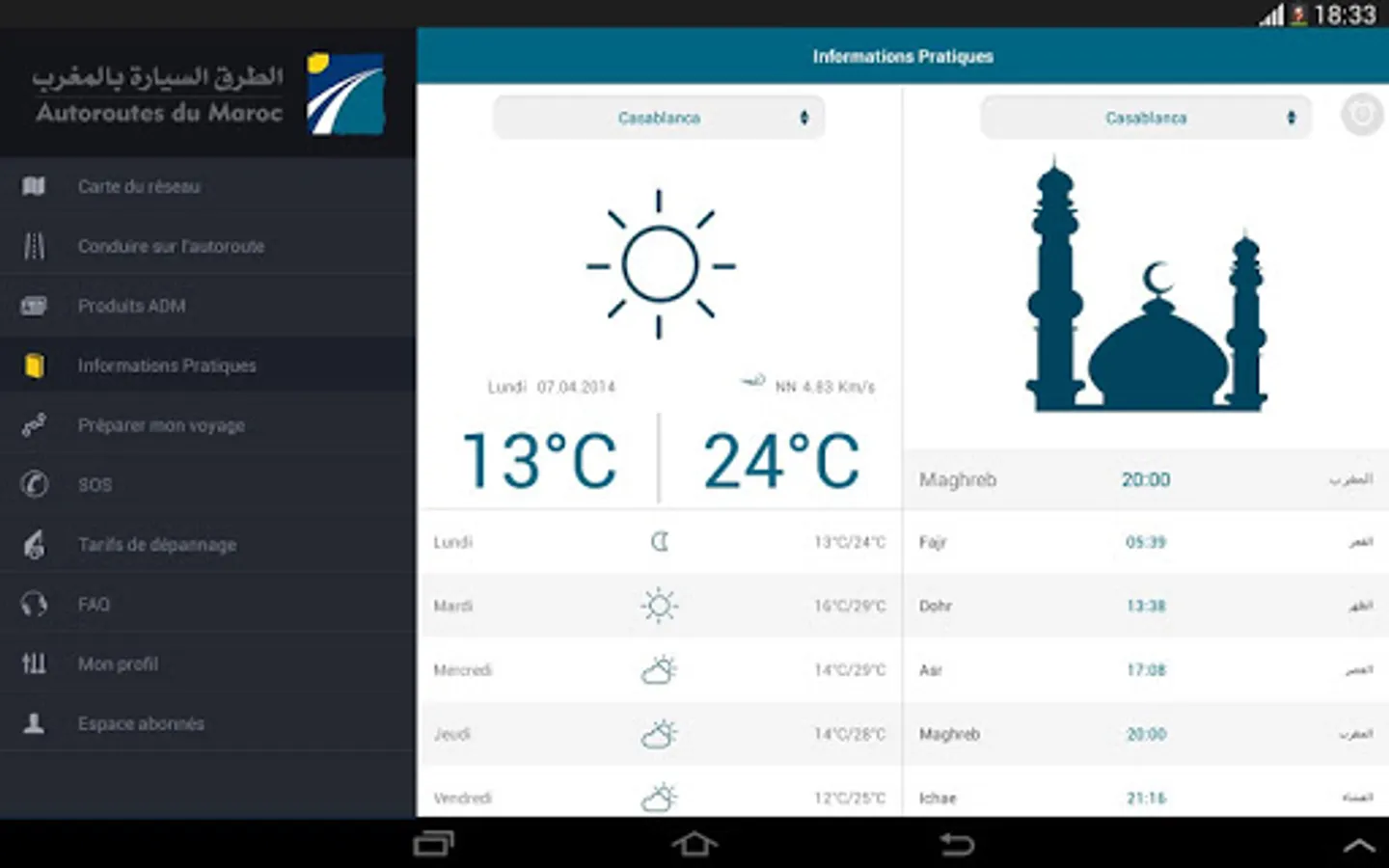 The Highways Application From Morocco is essential for all trips officer on the Moroccan motorway network. -Several features are available: