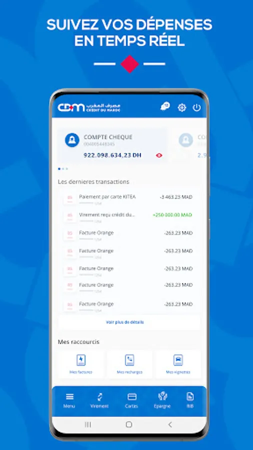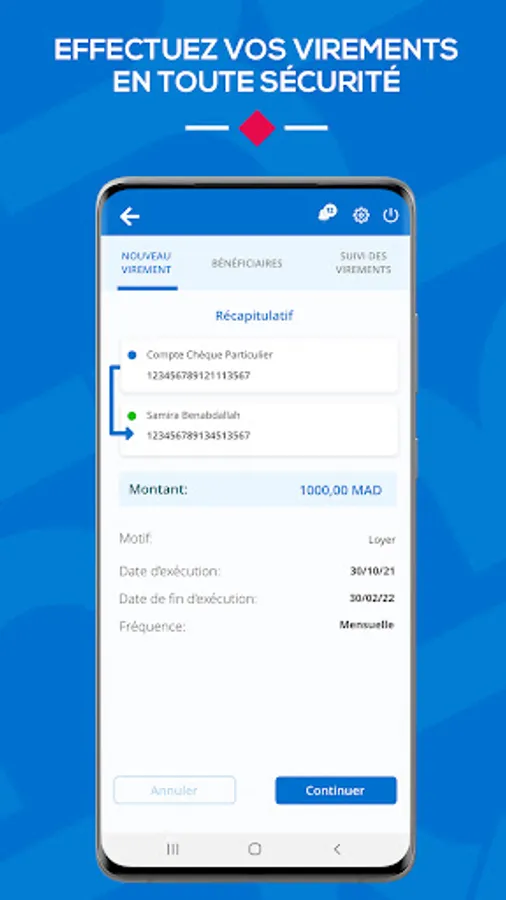 Make instant transfers to accounts opened with other banks in Morocco which will be credited in 20 seconds.