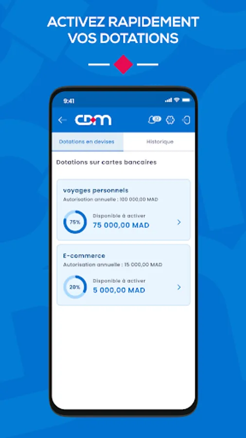 Instantly activate your personal travel allowance on your international bank card for your trips abroad.