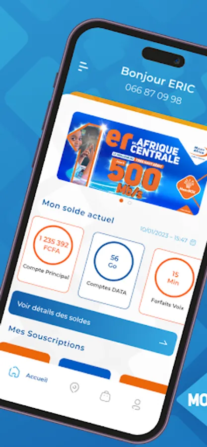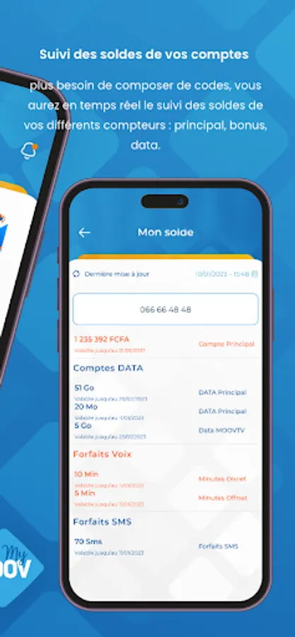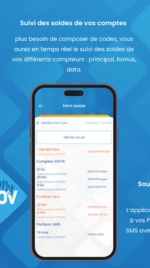 Monitoring of your account balances: No need to enter codes, you will have real-time monitoring of the balances of your various counters: Principal, Bonus, Data.