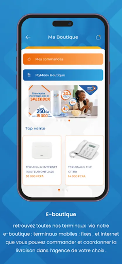 E-shop: Find all our terminals via our e-shop: Mobile, Fixed and Internet terminals that you can order and coordinate delivery to the agency of your choice.