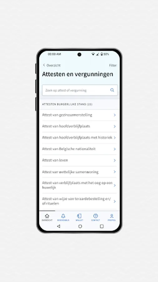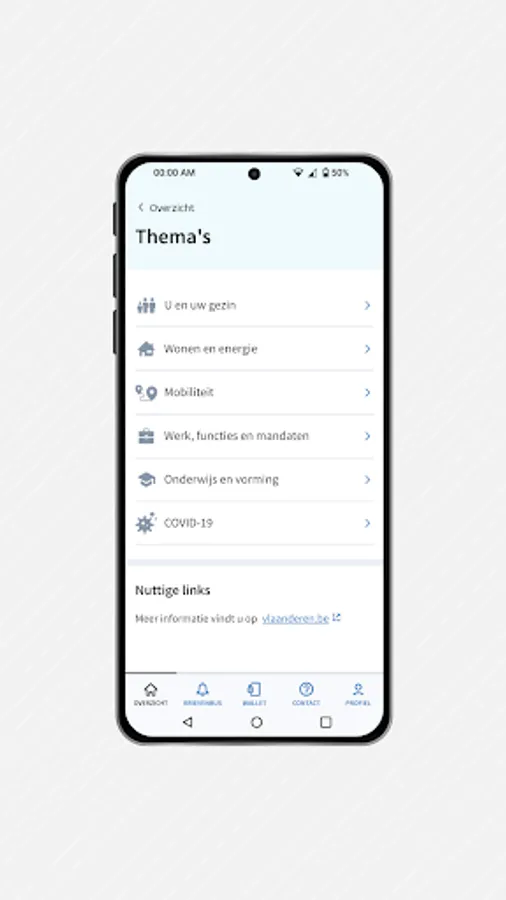 All functionalities of the general My Citizen Profile app of the Flemish government can also be found in the Halle version.