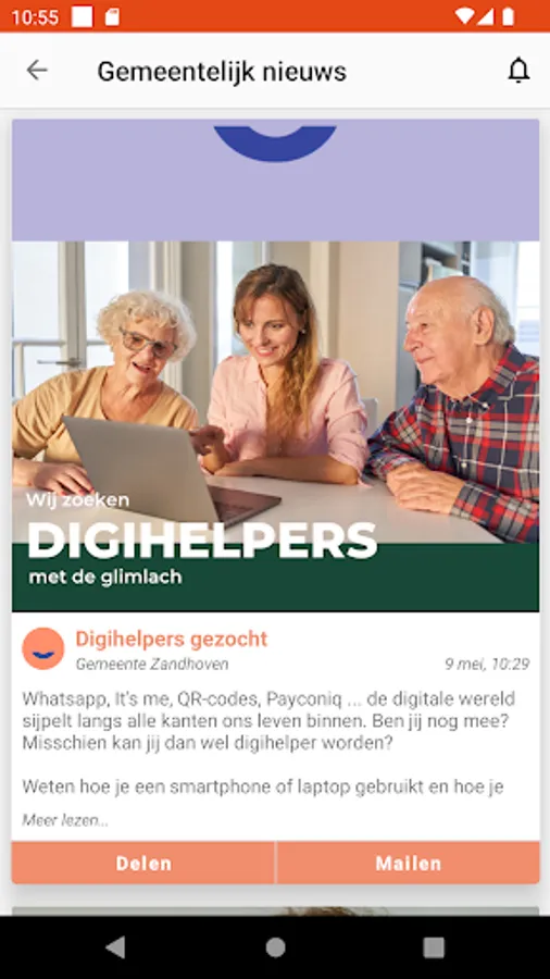 The Zandhoven City-App is a messenger for communicating with the local government, merchants, care institutions and associations.