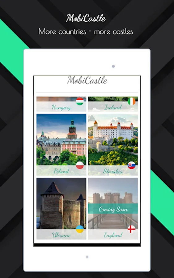 World of Castles: The #1 travel guide with maps, photos and reviews to the best castles of Europe like Neuschwanstein, Eltz, Wawel, Malbork, Hluboka, Buda, Spis, Blarney, Dunluce, Leeds, Warwick and much more. The routes to the history of kingdoms, places of battlefields and families who created the modern maps of the World. Covering 10 countries and more than 5000 castles, MobiCastle are FREE-to-use since 2014.