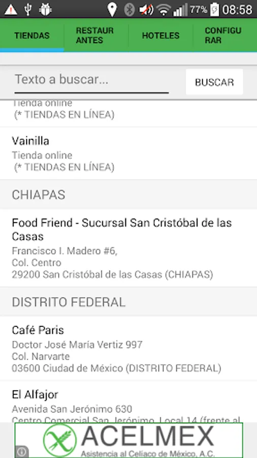 mobiCeliac ACELMEX is an app for your mobile device that provides info in Mexico about: