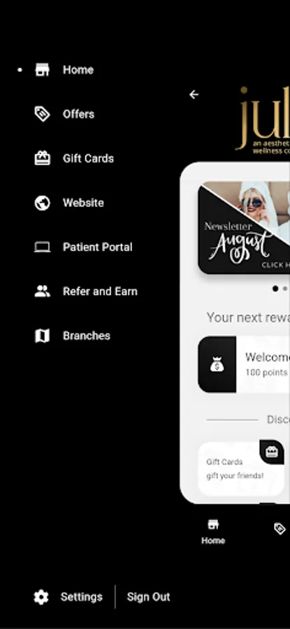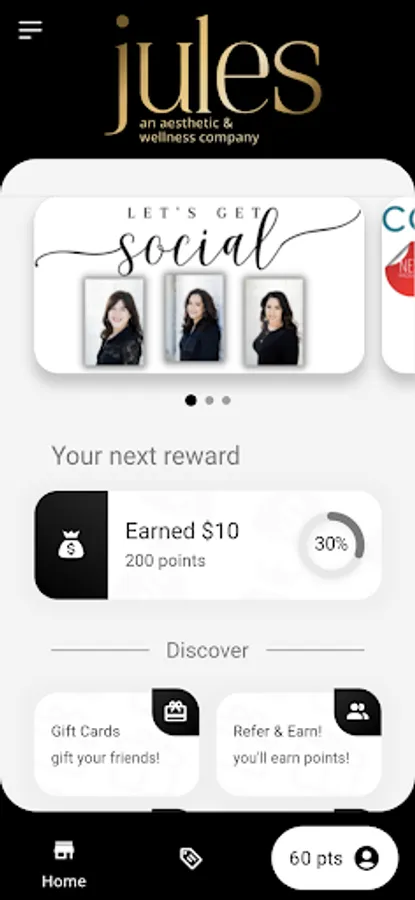Jules Aesthetics and Wellness is a med spa. Offering services like: Botox, Filler, Laser treatments and Facials. The app will be used to help patients earn points for discounts on future services. A Loyalty app.