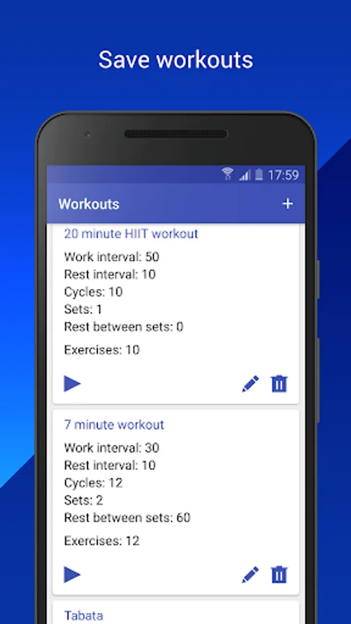 - Save your HIIT workouts and reuse them again.