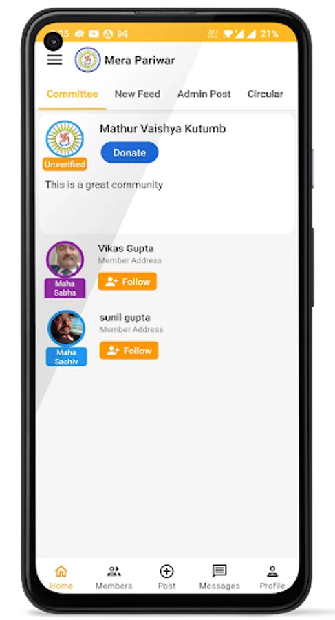 Mera Pariwar - an opportunity to become popular amongst your circle with less effort. Mera Pariwar app enables you to manage your community/ network smartly and wisely.
