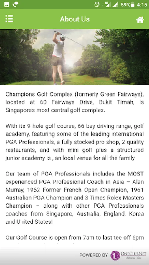 Our team of PGA Professionals includes the MOST experienced PGA Professional Coach in Asia – Alan Murray, 1962 Former French Open Champion, 1961 Australian PGA Champion and 3 Times Rolex Masters Champion – along with other PGA Professionals coaches from Singapore, Australia, England, Korea and United States!