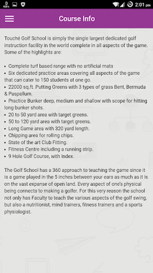 Touche Golf is a Bangalore based company running a 9-hole Golf School and an integrated Golf Club.