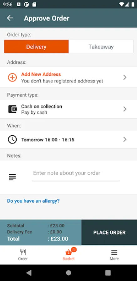 You can place your order through the app.