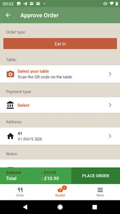 You can place your order through the app.