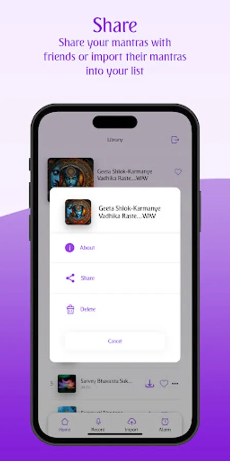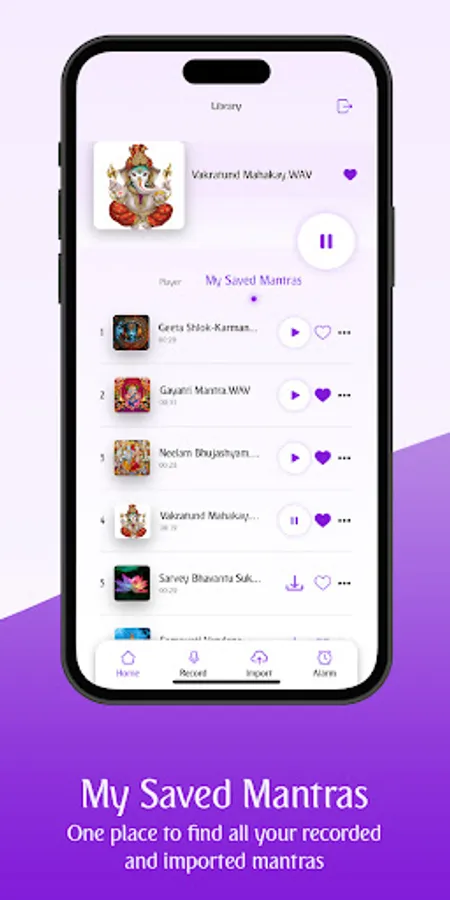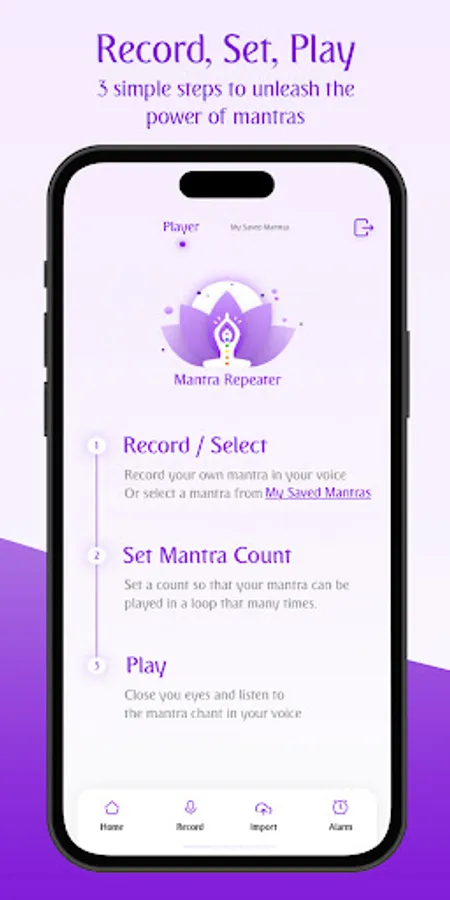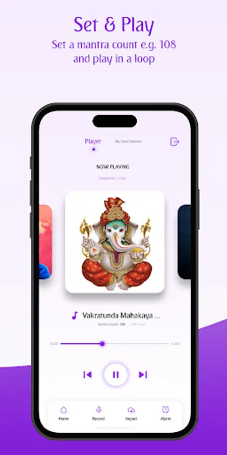 This unique app helps you hear / chant a mantra in your own voice. Just record it once and play the mantra in your own voice continuously.