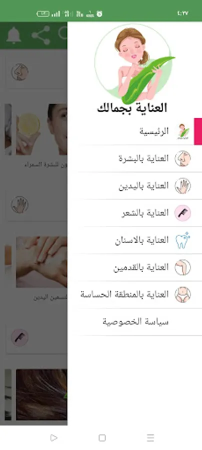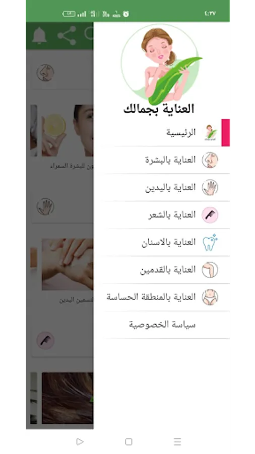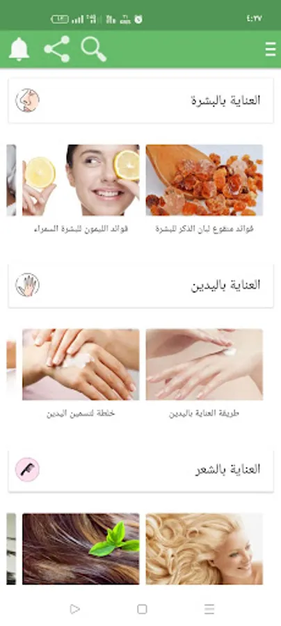 Your beauty care application provides you with international beauty recipes collected specifically for the beauty of your skin. It is a comprehensive application for everything related to beauty and health, Madam. It contains recipes for beautifying the face, hair, hands, feet, and the shape of the entire body.