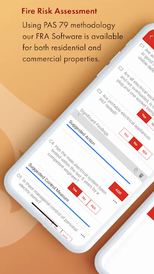Mobiess offers two types of advanced Fire Risk Assessment templates. One for a residential premises and one for a commercial premises. Both use the PAS 79 methodology and is a vital tool for any company looking to enhance and streamline the way they complete fire risk assessments.