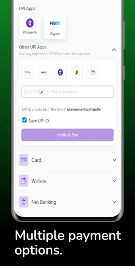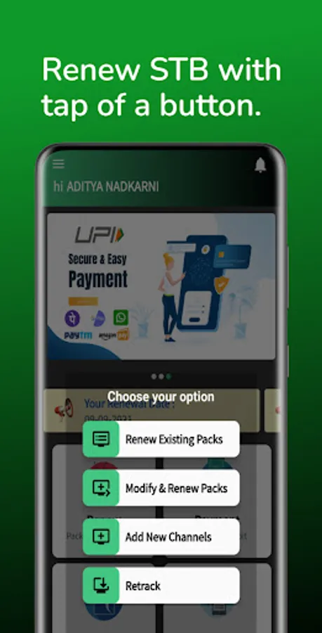 + With MW Fibernet - Customer App, we have different payment methods in UPI like