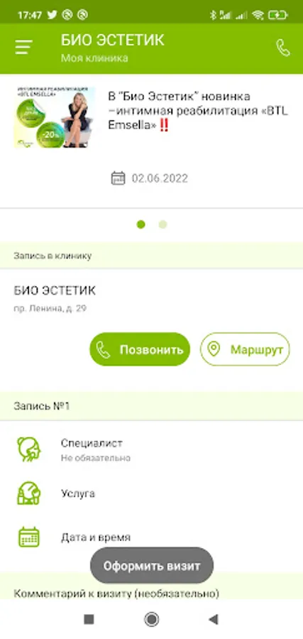 Using the application, you can follow the news, sign up for specialists, quickly receive information about special offers