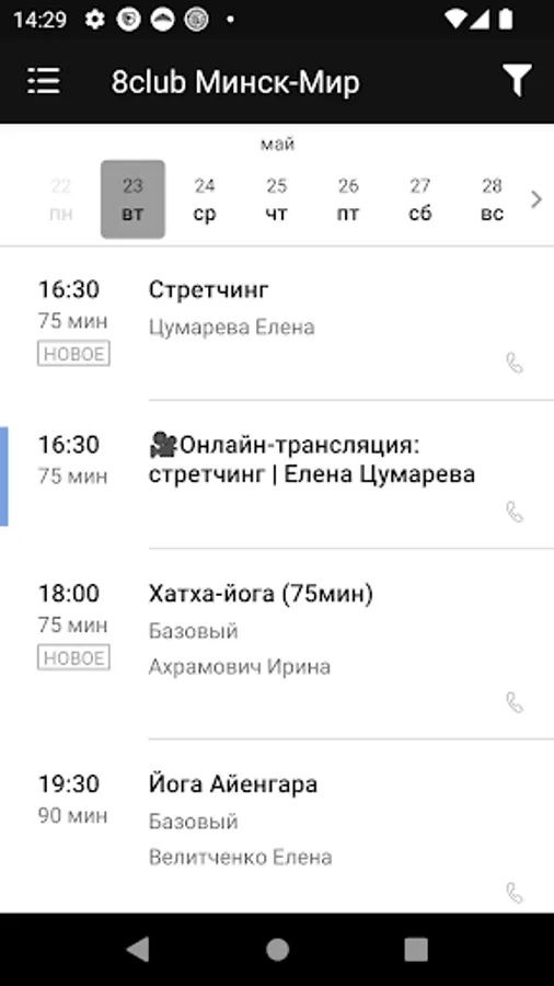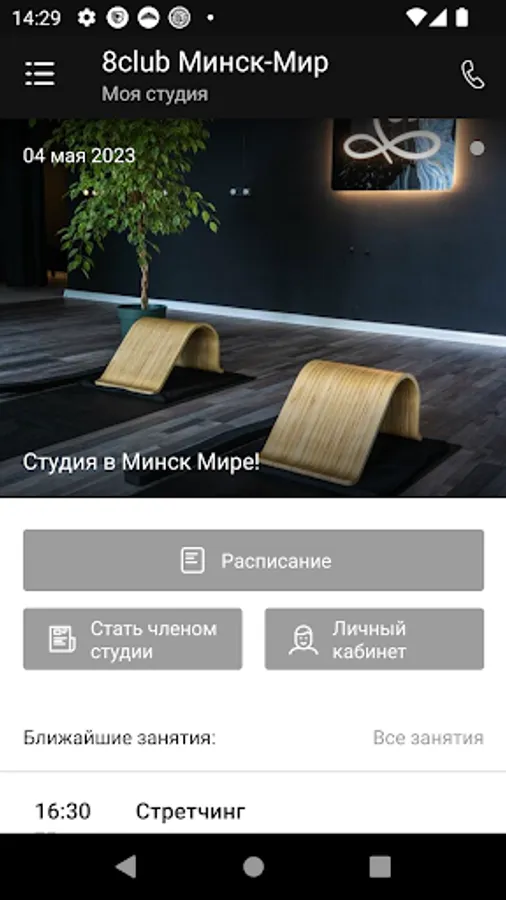 Using the application, you can follow the news, sign up for practice, quickly receive information about changes in the schedule and events in the studio.