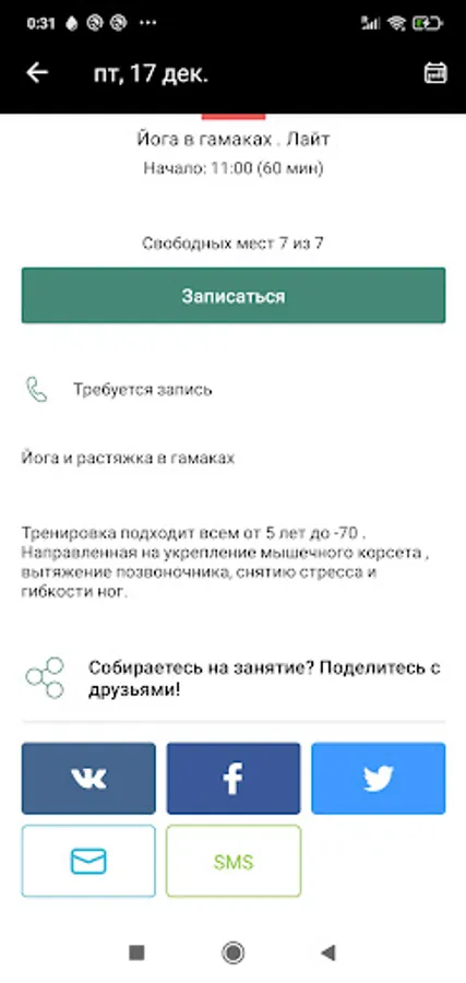Using the application, you can quickly sign up for classes, view the schedule, promptly receive information about changes in the schedule and special offers, as well as see your personal balance and history of visits.
