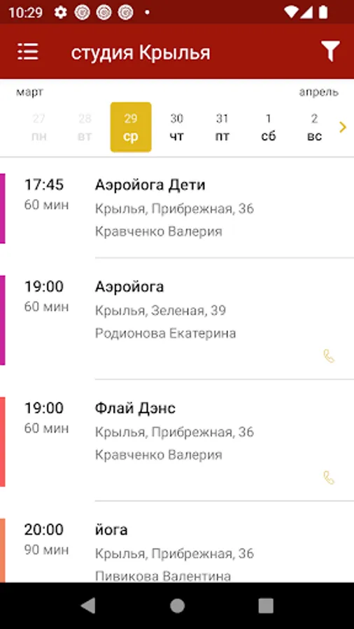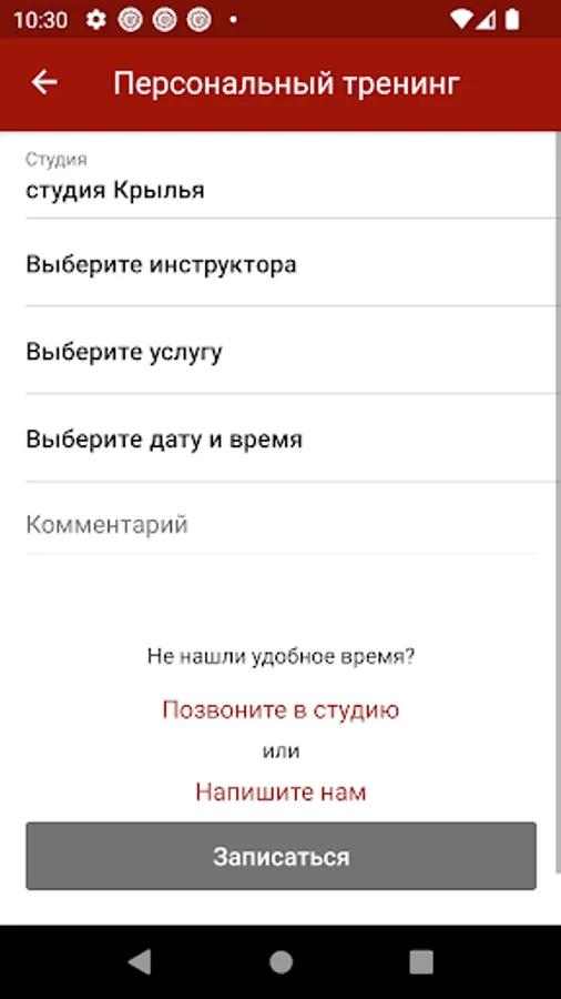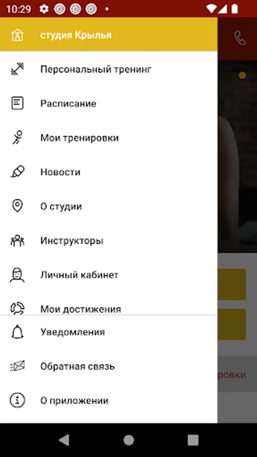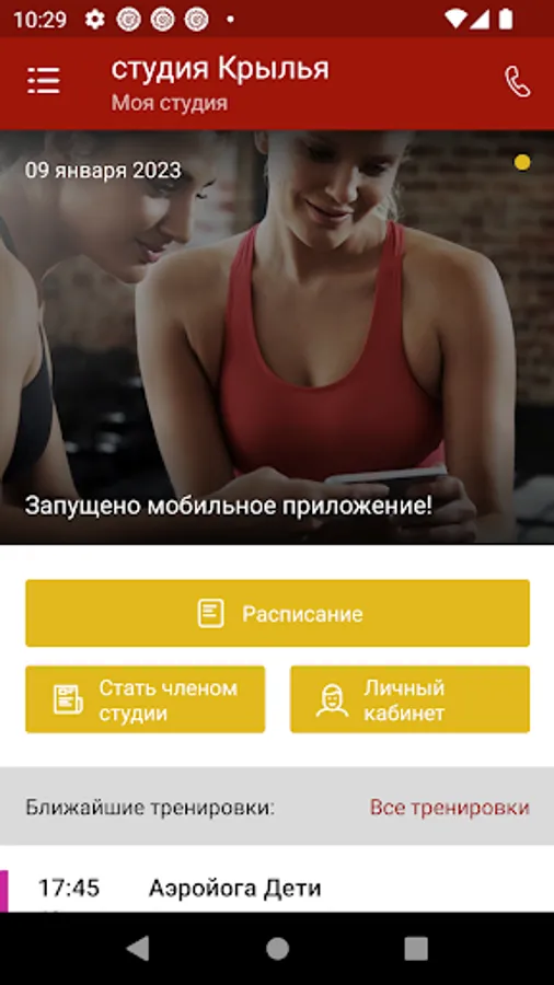 Using the application, you can sign up for training, follow the news and studio schedules, quickly receive information about changes in the schedule and special offers.