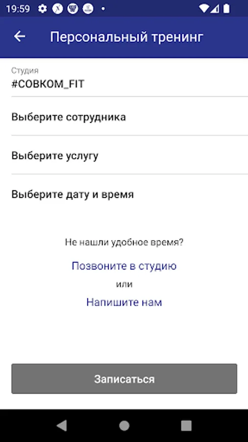 Using the SOVCOM_FIT application, you can sign up for training sessions, quickly receive information about changes in the schedule, follow the club's schedule and news.