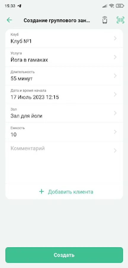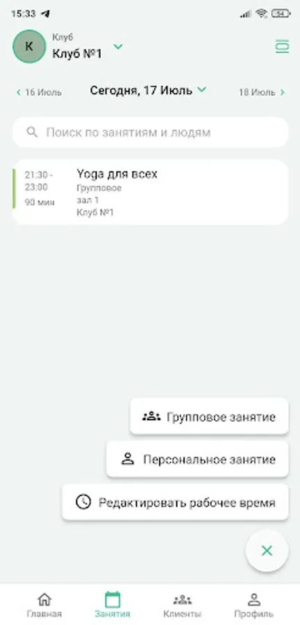 An application for trainers of fitness clubs using the software product "1C: Fitness Club".