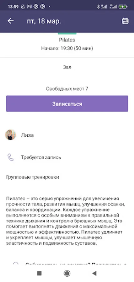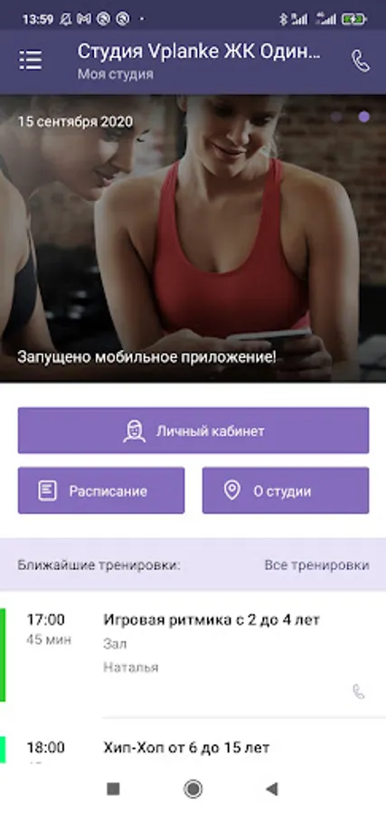 Using the application, you can sign up for a workout or class, follow the club's schedule, and quickly receive information about changes and events.