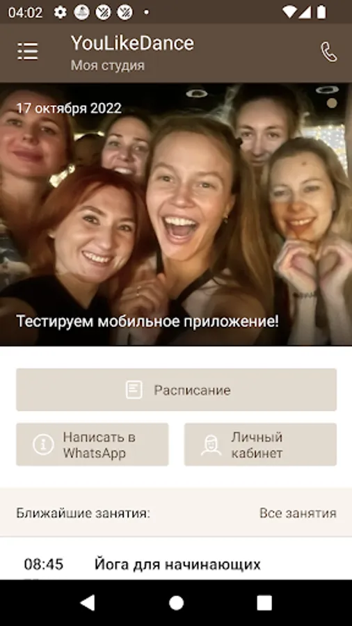 Using the application, you can follow the news, the club's schedule, quickly receive information about changes in the schedule and special offers.