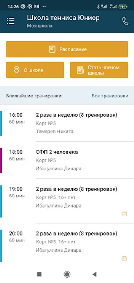 - get access to your personal account (personal schedule, payments, feedback, your achievements, etc.)